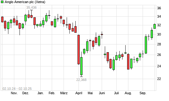 Mit dem Anstieg auf 32,20 EUR hat die Anglo American-Aktie (ISIN GB00BTK05J60) am 01.10.2025 ein neues 12-Monats-Hoch erreicht und damit den Kurs vom 29.09.2025 eingestellt.Die Anglo American-Aktie ...weiterlesen