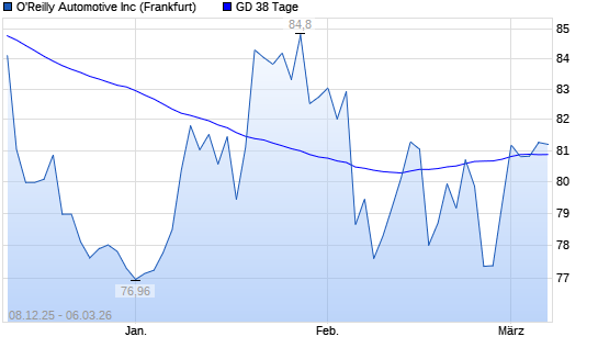 Mit dem Anstieg auf 81,26 EUR hat die O'Reilly Automotive-Aktie am 05.03.2026 die 38-Tage-Linie nach oben gekreuzt.Die O'Reilly Automotive-Aktie befindet sich seit dem 29.01.2026 ...weiterlesen
