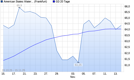 Mit dem Anstieg auf 64,35 EUR hat die American States Water-Aktie am 14.11.2025 die 20-Tage-Linie nach oben gekreuzt.Die American States Water-Aktie befindet sich seit dem 11.03.2025 im langfristigen ...weiterlesen