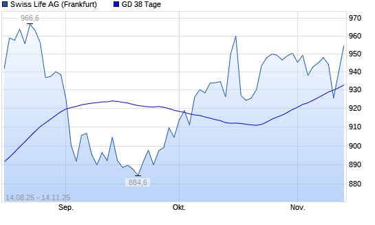 Mit dem Anstieg auf 940,00 EUR hat die Swiss Life-Aktie am 13.11.2025 die 38-Tage-Linie nach oben gekreuzt.Die Swiss Life-Aktie befindet sich seit dem 08.04.2025 im langfristigen Aufwärtstrend ...weiterlesen