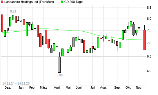 Mit dem Rücksetzer auf 6,85 EUR hat die Lancashire Holdings-Aktie am 13.11.2025 die 200-Tage-Linie nach unten gekreuzt.Die Lancashire Holdings-Aktie befand sich seit dem 15.09.2025 im langfristigen ...weiterlesen