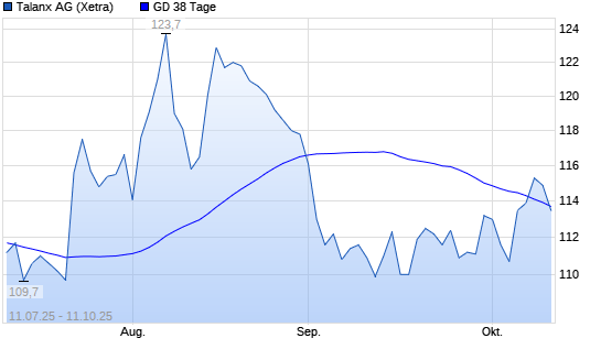 Mit dem Rücksetzer auf 113,50 EUR hat die Talanx-Aktie am 10.10.2025 die 38-Tage-Linie nach unten gekreuzt.Die Talanx-Aktie befindet sich seit dem 06.11.2024 im langfristigen Aufwärtstrend ...weiterlesen