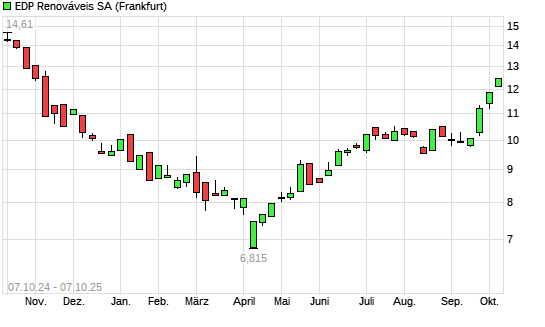 Mit dem Anstieg auf 12,12 EUR hat die EDP Renováveis-Aktie (ISIN ES0127797019) am 06.10.2025 ein neues 6-Monats-Hoch erreicht und damit den Kurs vom 03.10.2025 eingestellt.Die EDP Renováveis-Aktie ...weiterlesen