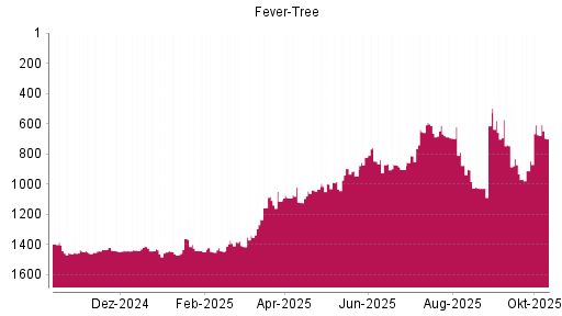 Fever-Tree ist Teil des 1681 Titel umfassenden Anlageuniversum der boerse.de-Signale Aktien Welt. In der großen Trendauswertung vom 05.09.2025 ist der Titel von Rang 906 auf Rang 1028 abgestiegen.Gesteuert ...weiterlesen