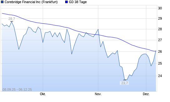 Mit dem Anstieg auf 26,10 EUR hat die Corebridge Financial-Aktie am 05.12.2025 die 38-Tage-Linie nach oben gekreuzt.Die Corebridge Financial-Aktie befindet sich seit dem 05.09.2025 im langfristigen ...weiterlesen