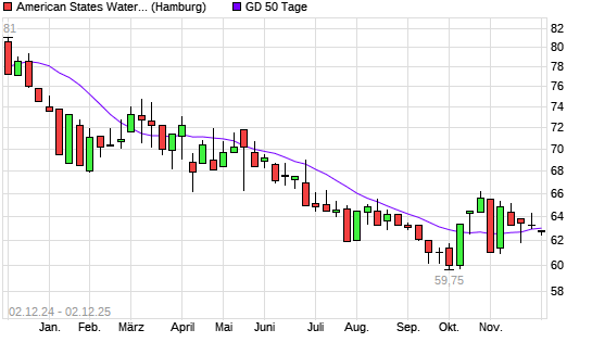 Mit dem Rücksetzer auf 62,75 EUR hat die American States Water-Aktie am 01.12.2025 die 50-Tage-Linie nach unten gekreuzt.Die American States Water-Aktie befindet sich seit dem 11.03.2025 ...weiterlesen