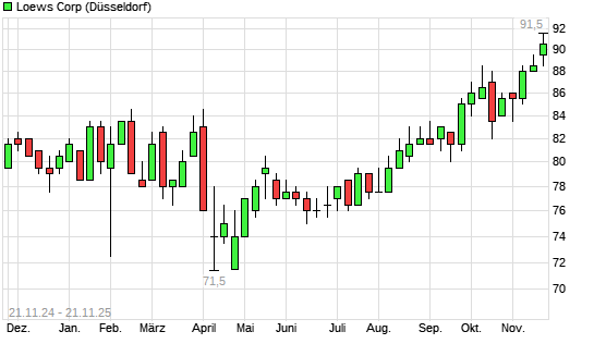 Mit dem Anstieg auf 91,00 EUR hat die Loews-Aktie (ISIN US5404241086) am 20.11.2025 ein neues All-Time-High erreicht und damit den Kurs vom 19.11.2025 eingestellt.Die Loews-Aktie befindet sich ...weiterlesen