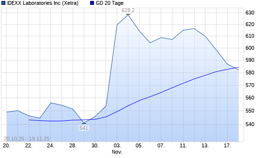 Mit dem Rücksetzer auf 571,00 EUR hat die IDEXX Laboratories-Aktie am 18.11.2025 die 20-Tage-Linie nach unten gekreuzt.Die IDEXX Laboratories-Aktie befindet sich seit dem 02.05.2025 im ...weiterlesen