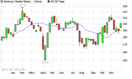 Mit dem Anstieg auf 193,80 EUR hat die Sartorius Stedim Biotech-Aktie am 25.11.2025 die 50-Tage-Linie nach oben gekreuzt.Die Sartorius Stedim Biotech-Aktie befindet sich seit dem 24.11.2025 ...weiterlesen