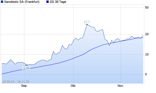 Mit dem Anstieg auf 19,12 EUR hat die Nanobiotix Ord Shs-Aktie am 17.11.2025 die 38-Tage-Linie nach oben gekreuzt.Die Nanobiotix Ord Shs-Aktie befindet sich seit dem 28.05.2025 im langfristigen ...weiterlesen