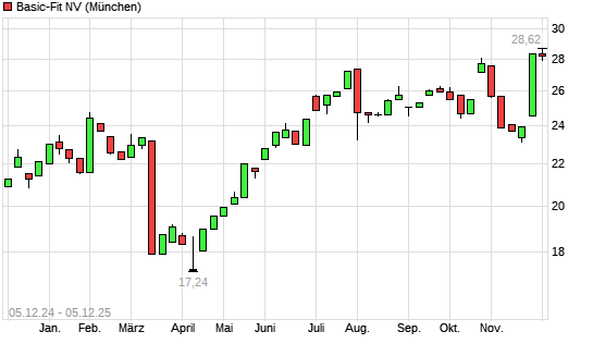 Mit dem Anstieg auf 28,38 EUR hat die Basic-Fit-Aktie (ISIN NL0011872650) am 04.12.2025 ein neues 12-Monats-Hoch erreicht und damit den Kurs vom 01.12.2025 eingestellt.Die Basic-Fit-Aktie befindet ...weiterlesen