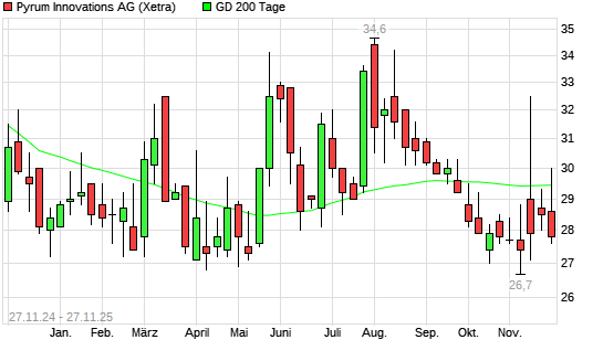 Mit dem Rücksetzer auf 27,90 EUR hat die Pyrum Innovations-Aktie am 26.11.2025 die 200-Tage-Linie nach unten gekreuzt.Die Pyrum Innovations-Aktie befand sich seit dem 25.11.2025 im langfristigen ...weiterlesen