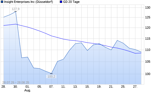 Mit dem Rücksetzer auf 108,00 EUR hat die Insight Enterprises-Aktie am 27.08.2025 die 20-Tage-Linie nach unten gekreuzt.Die Insight Enterprises-Aktie befindet sich seit dem 31.10.2024 im ...weiterlesen