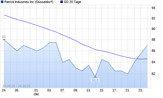 Mit dem Anstieg auf 86,00 EUR hat die Patrick Industries-Aktie am 23.10.2025 die 20-Tage-Linie nach oben gekreuzt.Die Patrick Industries-Aktie befindet sich seit dem 22.10.2025 im langfristigen ...weiterlesen