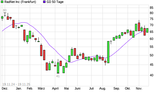 Mit dem Anstieg auf 65,50 EUR hat die RadNet-Aktie am 18.11.2025 die 50-Tage-Linie nach oben gekreuzt.Die RadNet-Aktie befindet sich seit dem 13.08.2025 im langfristigen Aufwärtstrend und hat ...weiterlesen