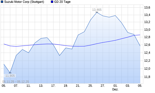Mit dem Rücksetzer auf 12,86 EUR hat die Suzuki Motor-Aktie am 04.12.2025 die 20-Tage-Linie nach unten gekreuzt.Die Suzuki Motor-Aktie befindet sich seit dem 18.08.2025 im langfristigen ...weiterlesen