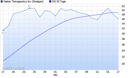Mit dem Rücksetzer auf 48,00 EUR hat die Nektar Therapeutics-Aktie am 16.10.2025 die 20-Tage-Linie nach unten gekreuzt.Der Abstand zur 200-Tage-Linie beträgt aktuell +159,03%. ...weiterlesen