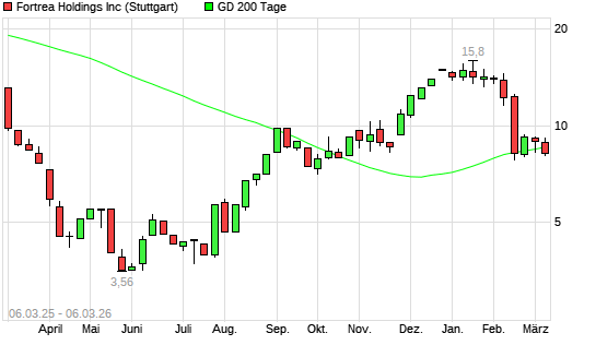 Mit dem Rücksetzer auf 8,60 EUR hat die Fortrea Holdings [Common Shares]-Aktie am 05.03.2026 die 200-Tage-Linie nach unten gekreuzt.Die Fortrea Holdings [Common Shares]-Aktie ...weiterlesen