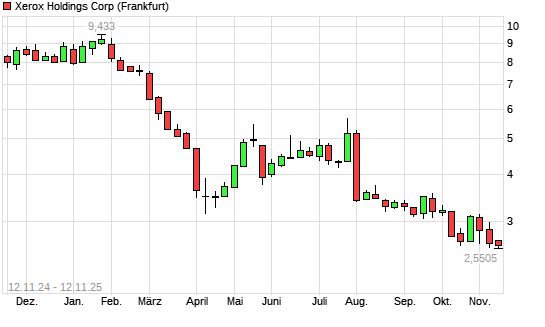 Mit dem Rücksetzer auf 2,58 EUR hat die Xerox-Aktie (ISIN US98421M1062) am 11.11.2025 ein neues All-Time-Low erreicht und damit den Kurs vom 04.11.2025 eingestellt.Die Xerox-Aktie befindet ...weiterlesen