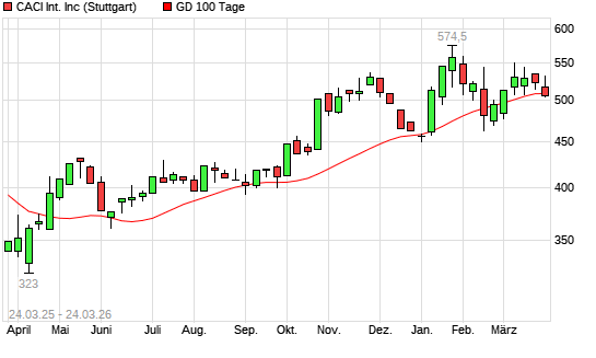 Mit dem Rücksetzer auf 504,50 EUR hat die CACI International-Aktie am 23.03.2026 die 100-Tage-Linie nach unten gekreuzt.Die CACI International-Aktie befindet sich seit dem ...weiterlesen