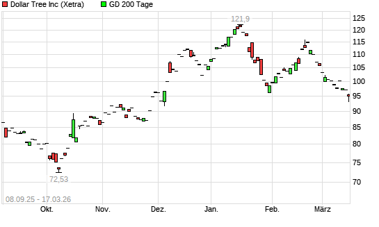 Mit dem Anstieg auf 99,30 EUR hat die Dollar Tree-Aktie am 16.03.2026 die 200-Tage-Linie nach oben gekreuzt.Die Dollar Tree-Aktie befand sich seit dem 13.03.2026 im ...weiterlesen