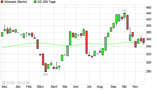 Mit dem Anstieg auf 350,00 EUR hat die Winmark-Aktie am 21.11.2025 die 200-Tage-Linie nach oben gekreuzt.Die Winmark-Aktie befand sich seit dem 19.11.2025 im langfristigen Abwärtstrend und hat ...weiterlesen