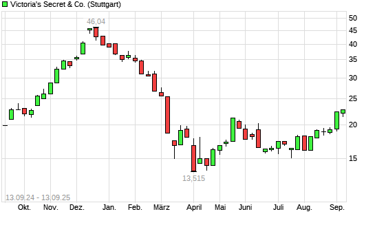Mit dem Anstieg auf 22,47 EUR hat die Victoria's Secret & Co-Aktie (ISIN US9264001028) am 12.09.2025 ein neues 6-Monats-Hoch erreicht und damit den Kurs vom 11.09.2025 eingestellt.Der Abstand ...weiterlesen