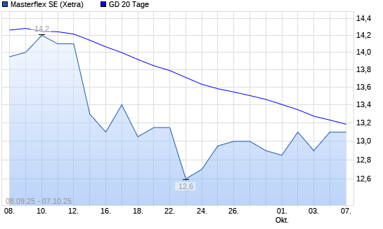 Mit dem Anstieg auf 13,05 EUR hat die Masterflex-Aktie am 06.10.2025 die 20-Tage-Linie nach oben gekreuzt.Die Masterflex-Aktie befindet sich seit dem 06.05.2025 im langfristigen Aufwärtstrend ...weiterlesen
