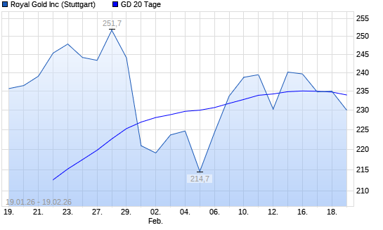 Mit dem Anstieg auf 235,50 EUR hat die Royal Gold-Aktie am 18.02.2026 die 20-Tage-Linie nach oben gekreuzt.Die Royal Gold-Aktie befindet sich seit dem 07.11.2025 im ...weiterlesen