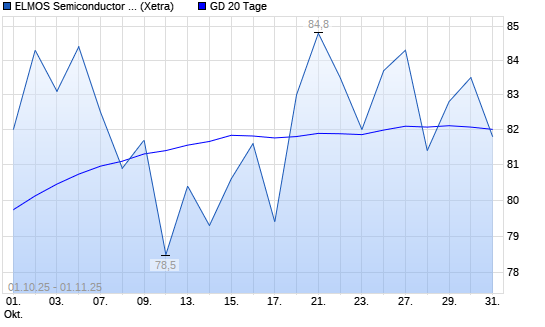 Mit dem Rücksetzer auf 81,50 EUR hat die Elmos Semiconductor-Aktie am 31.10.2025 die 20-Tage-Linie nach unten gekreuzt.Die Elmos Semiconductor-Aktie befindet sich seit dem 09.05.2025 im ...weiterlesen