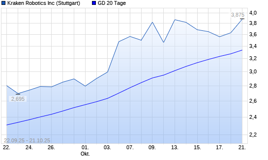 Mit dem Anstieg auf 3,67 EUR hat die Kraken Robotics-Aktie am 20.10.2025 die 20-Tage-Linie nach oben gekreuzt.Der Abstand zur 200-Tage-Linie beträgt aktuell +87,16%. ...weiterlesen