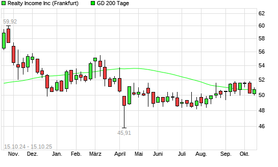 Mit dem Rücksetzer auf 50,69 EUR hat die Realty Income-Aktie am 14.10.2025 die 200-Tage-Linie nach unten gekreuzt.Die Realty Income-Aktie befand sich seit dem 13.10.2025 im langfristigen ...weiterlesen