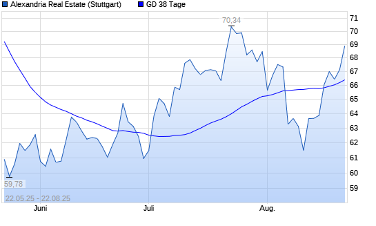 Mit dem Rücksetzer auf 65,08 EUR hat die Alexandria Real Estate-Aktie am 21.08.2025 die 38-Tage-Linie nach unten gekreuzt.Die Alexandria Real Estate-Aktie befindet sich seit dem 25.10.2024 ...weiterlesen