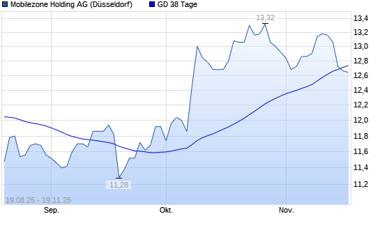 Mit dem Rücksetzer auf 12,54 EUR hat die Mobilzone-Aktie am 18.11.2025 die 38-Tage-Linie nach unten gekreuzt.Der Abstand zur 200-Tage-Linie beträgt aktuell +2,13%. ##trendBox## Die ...weiterlesen