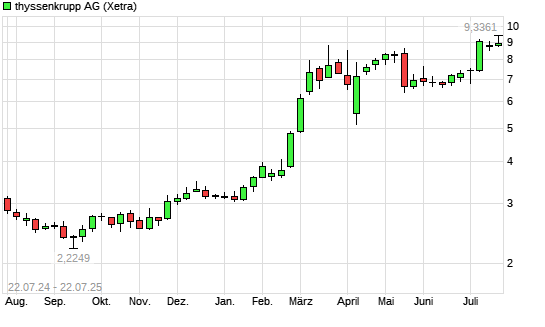 Mit dem Anstieg auf 11,29 EUR hat die ThyssenKrupp-Aktie (ISIN DE0007500001) am 21.07.2025 ein neues 3-Jahres-Hoch erreicht und damit den Kurs vom 11.07.2025 eingestellt.Die ThyssenKrupp-Aktie ...weiterlesen