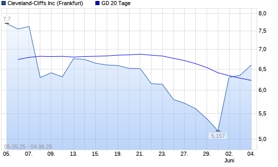 Mit dem Anstieg auf 6,35 EUR hat die CLEVELAND-CLIFFS-Aktie am 03.06.2025 die 20-Tage-Linie nach oben gekreuzt.Der Abstand zur 200-Tage-Linie beträgt aktuell -34,10%. ##trendBox## Die ...weiterlesen