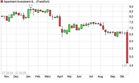 Mit dem Rücksetzer auf 4,76 EUR hat die Apartment Investment Management-Aktie (ISIN US03748R7474) am 16.10.2025 ein neues 3-Jahres-Tief erreicht und damit den Kurs vom 15.10.2025 eingestellt.Die ...weiterlesen