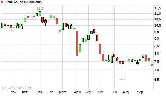 Mit dem Rücksetzer auf 7,30 EUR hat die Ricoh-Aktie (ISIN JP3973400009) am 01.10.2025 ein neues 12-Monats-Tief erreicht und damit den Kurs vom 22.07.2025 eingestellt.Die Ricoh-Aktie befindet ...weiterlesen