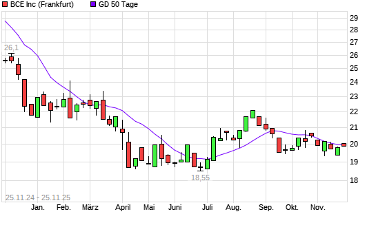 Mit dem Anstieg auf 20,05 EUR hat die Bce-Aktie am 24.11.2025 die 50-Tage-Linie nach oben gekreuzt.Die Bce-Aktie befindet sich seit dem 24.10.2025 im langfristigen Abwärtstrend und hat in diesem ...weiterlesen