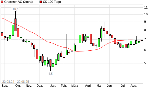 Mit dem Rücksetzer auf 6,70 EUR hat die Grammer-Aktie am 22.08.2025 die 100-Tage-Linie nach unten gekreuzt.Die Grammer-Aktie befindet sich seit dem 15.07.2025 im langfristigen Aufwärtstrend ...weiterlesen