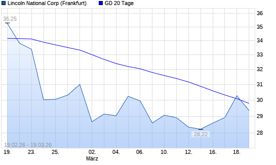 Mit dem Anstieg auf 30,27 EUR hat die Lincoln National-Aktie am 18.03.2026 die 20-Tage-Linie nach oben gekreuzt.Die Lincoln National-Aktie befindet sich seit dem 23.02.2026 ...weiterlesen