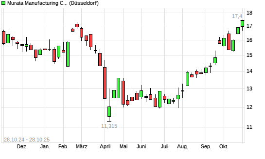 Mit dem Anstieg auf 16,96 EUR hat die Murata Manufacturing-Aktie (ISIN JP3914400001) am 27.10.2025 ein neues 6-Monats-Hoch erreicht und damit den Kurs vom 24.10.2025 eingestellt.Die Murata Manufacturing-Aktie ...weiterlesen