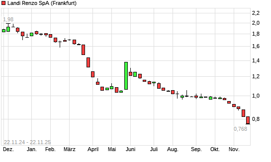 Mit dem Rücksetzer auf 0,77 EUR hat die Landi Renzo SpA-Aktie (ISIN IT0005619843) am 21.11.2025 ein neues All-Time-Low erreicht und damit den Kurs vom 20.11.2025 eingestellt.Der Abstand ...weiterlesen