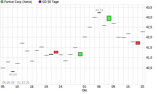Mit dem Anstieg auf 41,59 EUR hat die Fortive-Aktie am 20.10.2025 die 50-Tage-Linie nach oben gekreuzt.Die Fortive-Aktie befindet sich seit dem 10.03.2025 im langfristigen Abwärtstrend und hat ...weiterlesen