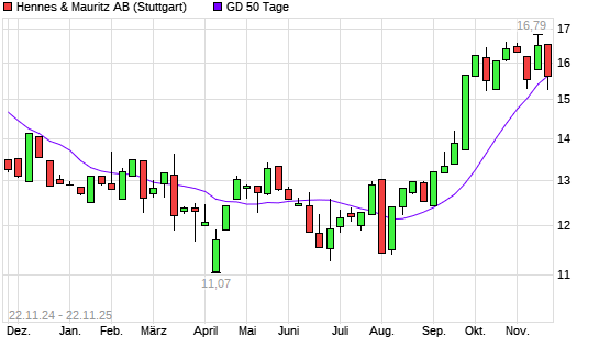 Mit dem Anstieg auf 15,63 EUR hat die Hennes & Mauritz-Aktie am 21.11.2025 die 50-Tage-Linie nach oben gekreuzt.Die Hennes & Mauritz-Aktie befindet sich seit dem 04.09.2025 im langfristigen ...weiterlesen