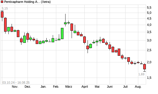 Mit dem Rücksetzer auf 1,70 EUR hat die PENTIXAPHARM Holding O.N.-Aktie (ISIN DE000A40AEG0) am 15.08.2025 ein neues All-Time-Low erreicht und damit den Kurs vom 14.08.2025 eingestellt.Der Abstand ...weiterlesen