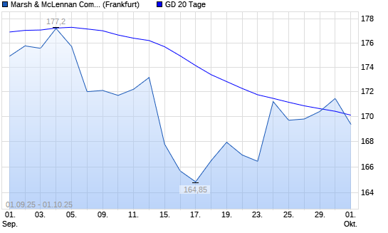 Mit dem Anstieg auf 171,45 EUR hat die Marsh & McLennan Companies-Aktie am 30.09.2025 die 20-Tage-Linie nach oben gekreuzt.Die Marsh & McLennan Companies-Aktie befindet sich seit dem 15.04.2025 ...weiterlesen