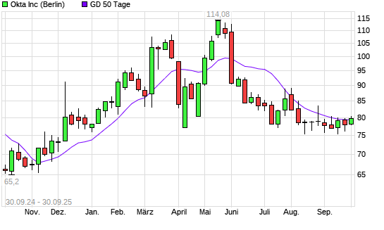 Mit dem Anstieg auf 80,06 EUR hat die Okta-Aktie am 29.09.2025 die 50-Tage-Linie nach oben gekreuzt.Die Okta-Aktie befindet sich seit dem 24.06.2025 im langfristigen Abwärtstrend und hat in ...weiterlesen