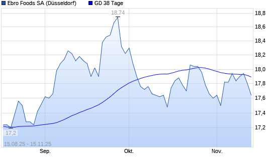 Mit dem Rücksetzer auf 17,90 EUR hat die Ebro Foods-Aktie am 14.11.2025 die 38-Tage-Linie nach unten gekreuzt.Die Ebro Foods-Aktie befindet sich seit dem 04.02.2025 im langfristigen Aufwärtstrend ...weiterlesen