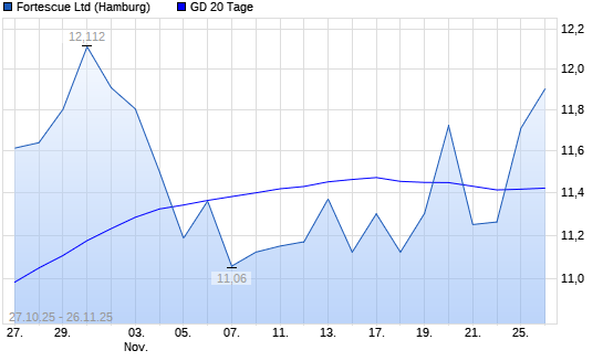 Mit dem Anstieg auf 11,65 EUR hat die Fortescue Metals Group-Aktie am 25.11.2025 die 20-Tage-Linie nach oben gekreuzt.Die Fortescue Metals Group-Aktie befindet sich seit dem 04.08.2025 im langfristigen ...weiterlesen